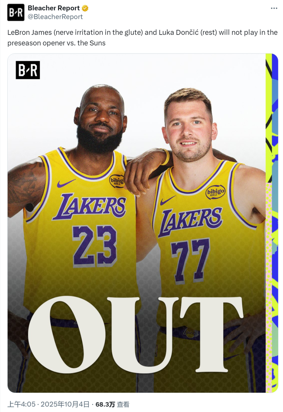 NBA开打!湖人官宣!东契奇和詹姆斯率五人退赛