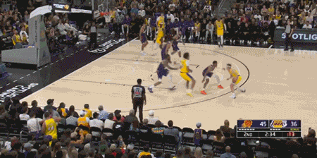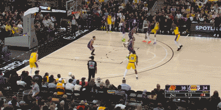 第一节打完,太阳31-16领先湖人15分。太阳首节10次助攻,湖人全队只有2次助攻。里夫斯单节4中3得到9分,个人进攻没问题,但助攻数是0。第二节八村塁连得6分,布朗尼造杀伤,湖人迫近分差。海斯空接隔扣布克,点燃全场!