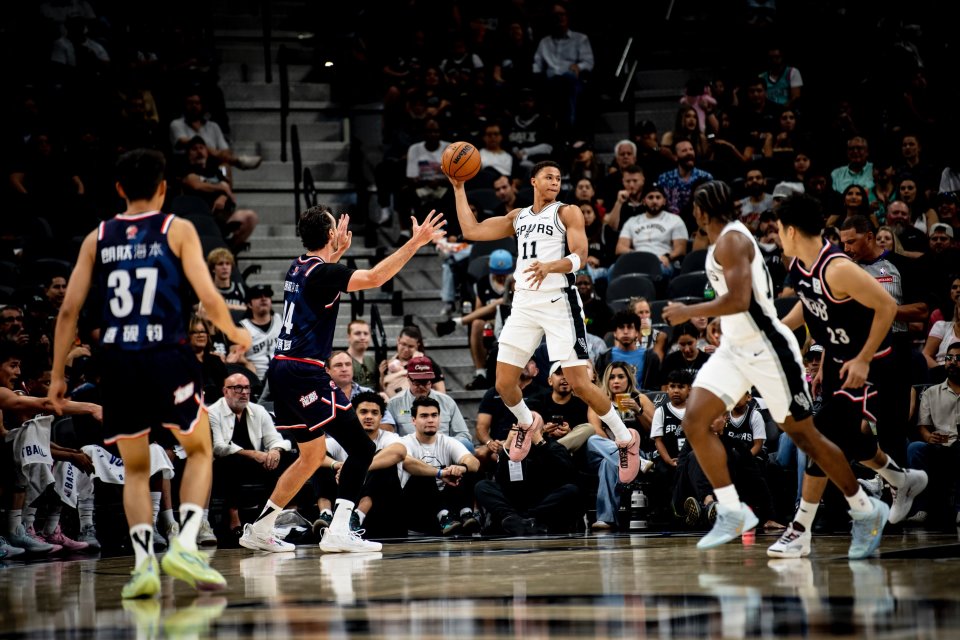 时隔六年,CBA球队的身影再次出现在了NBA季前赛的赛场上。广州龙狮队在美国迎来了他们系列热身赛中的第一个对手,由文班亚马所率领的圣安东尼奥马刺队。正如外界赛前所预料的那样,由于双方在纸面实力上存在着巨大的差距,本场比赛的过程并无太多悬念,广州队最终以88比119,31分的巨大分差落败。球队新援陈国豪得到了13分,表现可圈可点,另一球员管子煜表现同样也不错,替补上来敢打敢拼,在19分钟的时间里,投篮8中2,三分球4中1,罚球2中1,拿到6分2篮板2助攻的数据。但本场比赛最令人印象深刻,也最能体现CBA与NBA之间鸿沟的,却并非是最终的比分,而是一个发生在文班亚马与广州队员李祥波之间的,一对一攻防回合。(gif动图见文章末尾)