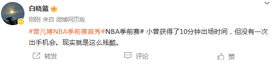 曾凡博NBA首秀0分1抢断引热议 媒体人吐槽10分钟0出手尽显“残酷”
