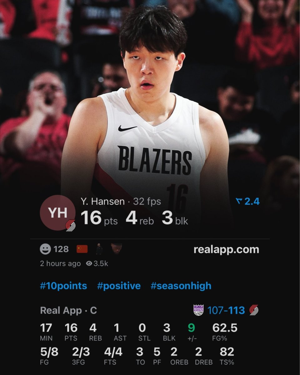 随着杨瀚森持续爆发,开拓者队官方再次更推写道:杨瀚森已经疯狂了!