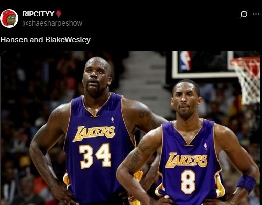 随后RIPCITYY晒科比与奥尼尔合照调侃:今天的布雷克-韦斯利和杨瀚森!