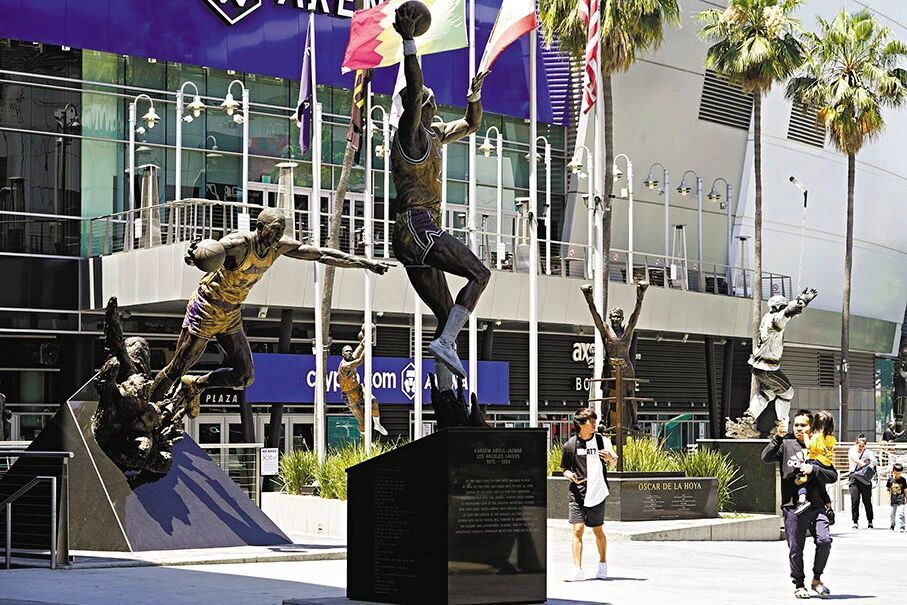雕像都不用问了,如果詹姆斯不是在湖人退役,就湖人这历史辉煌程度,雕像肯定是不用想的,球馆门口有点太拥挤了。