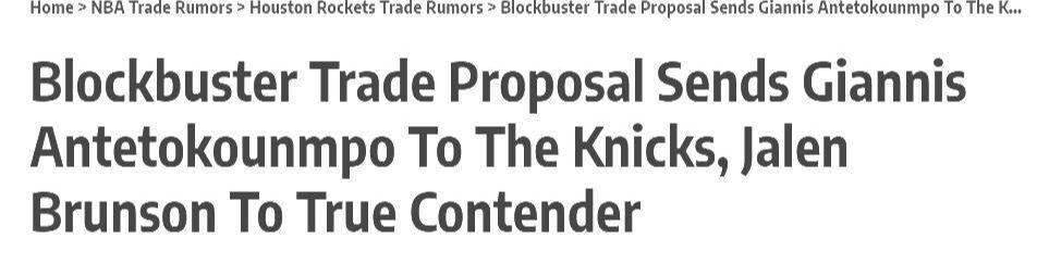 但是尼克斯为了得到布里奇斯已经付出了大部分的首轮签,雄鹿如果重建,对于布伦森布里奇斯这样的即战力球员没有太大的兴趣,不过美媒《BleacherReport》记者提出了一套交易方案来看,如果拉入火箭,就能够让三支球队各取所需,大致的交易主体就是字母哥加盟纽约,布伦森联手杜兰特,雄鹿则获得了一系列的重建资产,一起来看看。