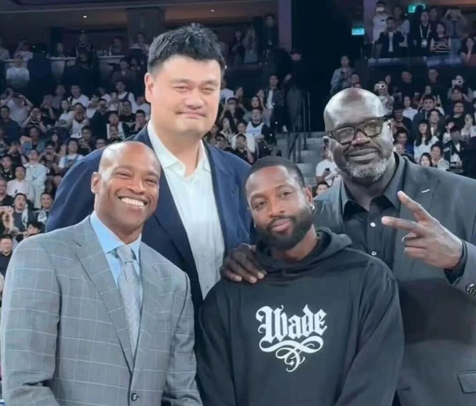 贝克汉姆、姚明、成龙、奥尼尔合影,4人上演“凹凸凹凸”画面,成龙秒变“小鸟依人”