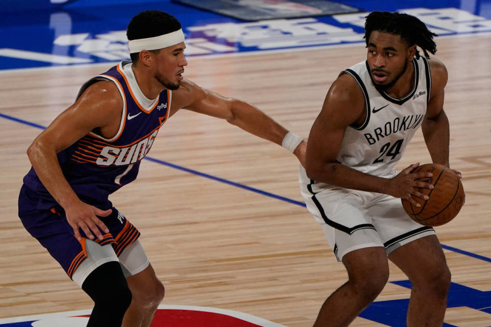 第三节比赛曼恩外线三分打进,篮网反超了比分。此后曼恩补篮命中,篮网扩大领先。随着邓恩反击暴扣,太阳把分差缩小到了3分。此后太阳队连续发力,随着布克罚球命中,太阳领先到了8分。此后篮网队连续追分,把分差缩小到了6分。三节比赛战罢,太阳领先7分。