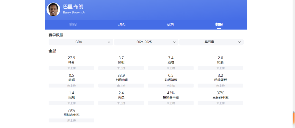 在CBA24-25赛季对抗更激烈的季后赛上,他场均仍能高效砍下27.9分7.4助攻2抢断,三项数据均季后赛前7水平。