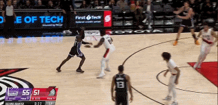 阿夫迪亚偏向 “虎山行”,面对国王两人围堵毫无惧色强行突破,顶着防守完成上篮得分;