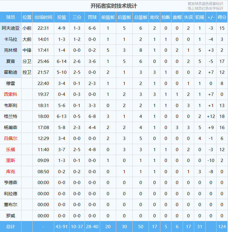 相比首秀,这一场的首发阵容有所调整,阿夫迪亚顶替格兰特先发出战,先发五虎更新为:霍勒迪、克林根、卡马拉、夏普、阿夫迪亚。