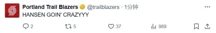 开拓者官推也是爆发:“瀚森打疯了!!”