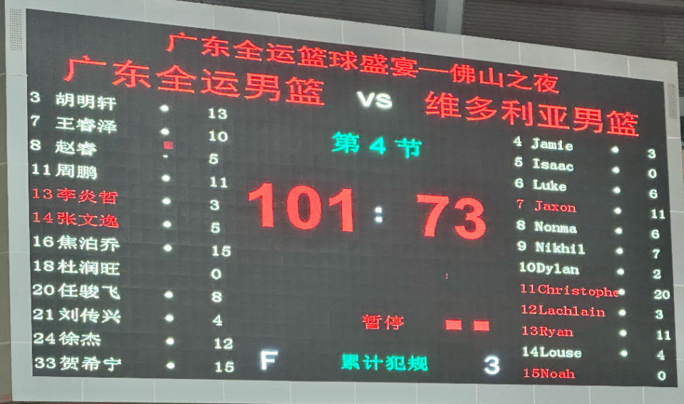 如今广东全运男篮第三场热身赛对阵澳洲维多利亚男篮,广东全运男篮早早一边倒碾压对手,上半场已经轻松取得30分巨大领先优势。下半场已经提前失去胜负悬念,最终广东全运男篮101-73大胜澳洲维多利亚男篮豪取3连胜。