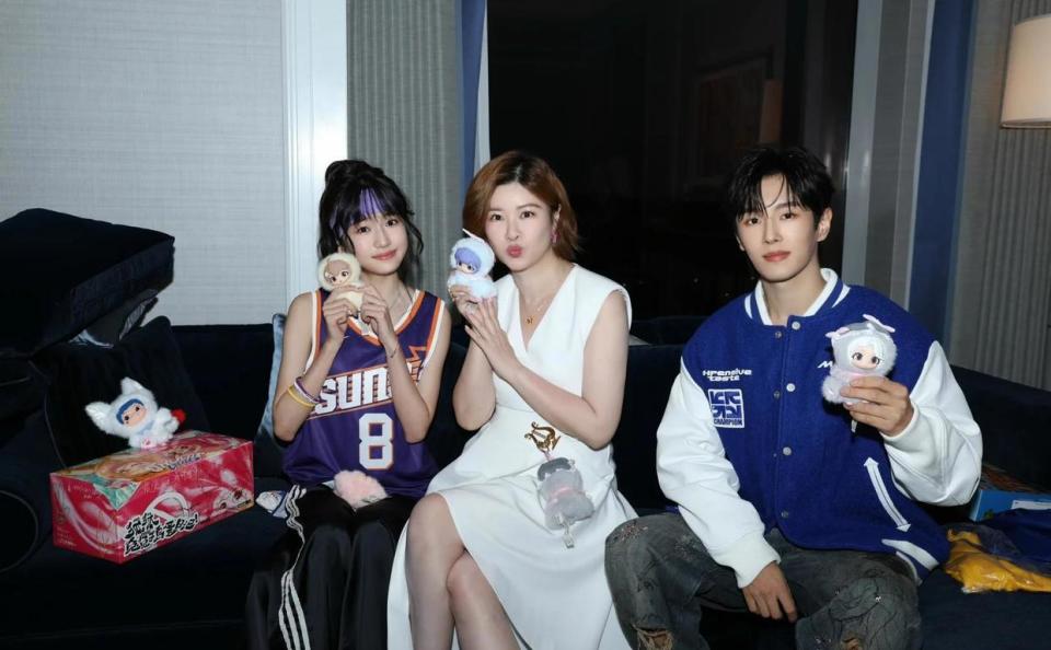 她带着自家的陈芷琰和李汶翰一起亮相,自己一直盯着手机,看得很投入,而那两位艺人倒是专注得挺彻底的。