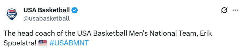 “我认识埃里克-斯波尔斯特拉已近20年,在与美国篮球协会合作的这段时间里,我对他有了更深的了解,”希尔说道,“斯波不仅是一位杰出的教练,更是优秀的同事、挚友与父亲,这些特质让他成为2028年前延续美国男篮国家队执教传承的完美人选。”