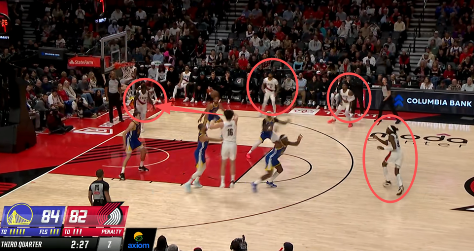 第三节前半段,勇士和开拓者又是来回奔袭,杨瀚森在这样的节奏里折返跑不停,也没干到什么事情。直到开拓者让杨瀚森开始接球,杨瀚森才命中了三分,随后库里还了一个三分,没想到能在季前赛就看到杨瀚森和库里对飚三分。