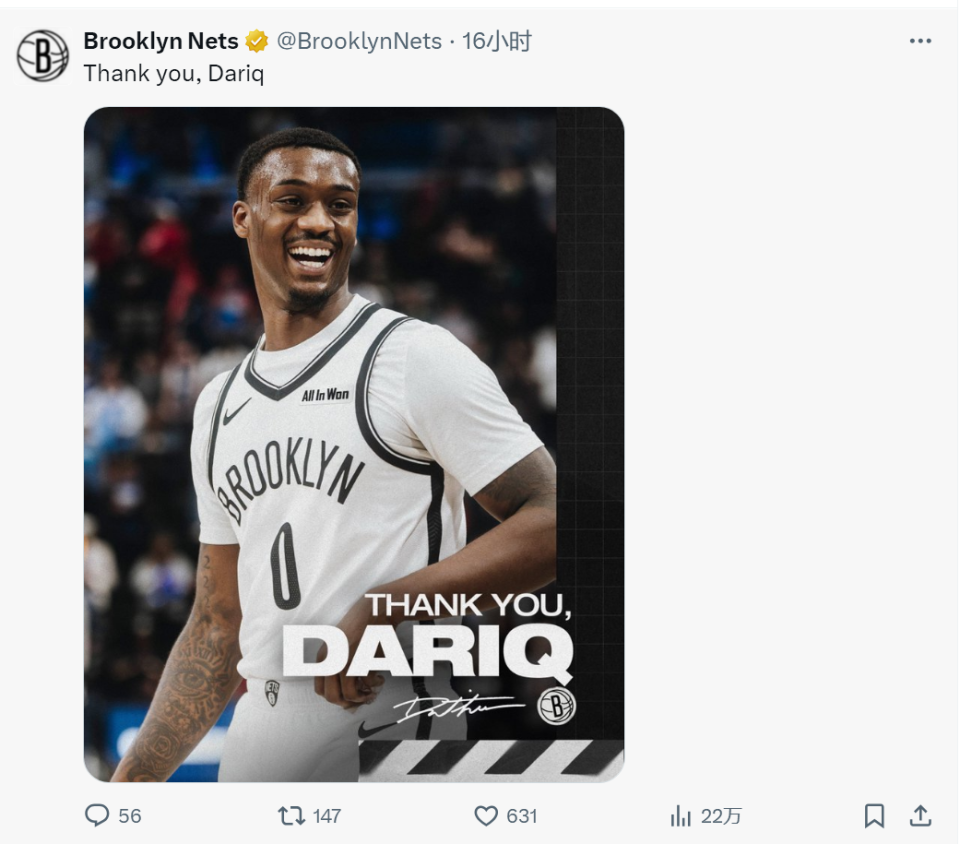 布鲁克林篮网官方宣布:球队正式裁掉达里克-怀特黑德。他的合同还剩两年,2025-26赛季年薪330万美元,篮网已经转为保障合同;2026-27赛季年薪536万美元,球队选项。也就是说,篮网此次解约,只需给怀特黑德330万美元。