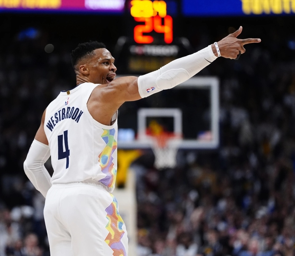 2024-25赛季,拉塞尔威斯布鲁克代表丹佛掘金打了75场常规赛,场均出战27.9分钟,可以得到13.3分4.9板6.1助攻1.4抢断0.5盖帽,投篮命中率44.9%,三分命中率32.3%,罚球命中率66.1%。