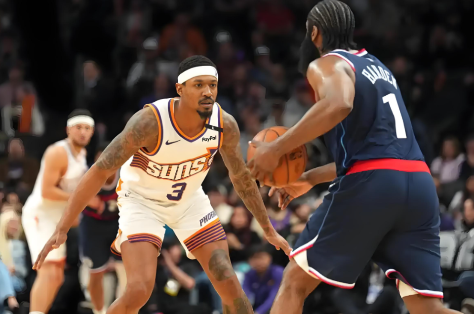 但问题在于,纸面数据掩盖不了事实,比尔这两年在太阳的表现属实有些高薪低能了,伤病拖累让他缺席了58场比赛,防守端也是对手提款机。而快船签他,无非是想补足外线投射和持球火力,但不要忘记了,这支球队已经有了一个同样需要球权、同样防守不好的哈登。