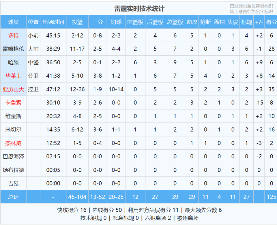 亚历山大35分5板5助2断2帽、霍姆格伦28分7板2助。最后看看数据,说说你的感受: