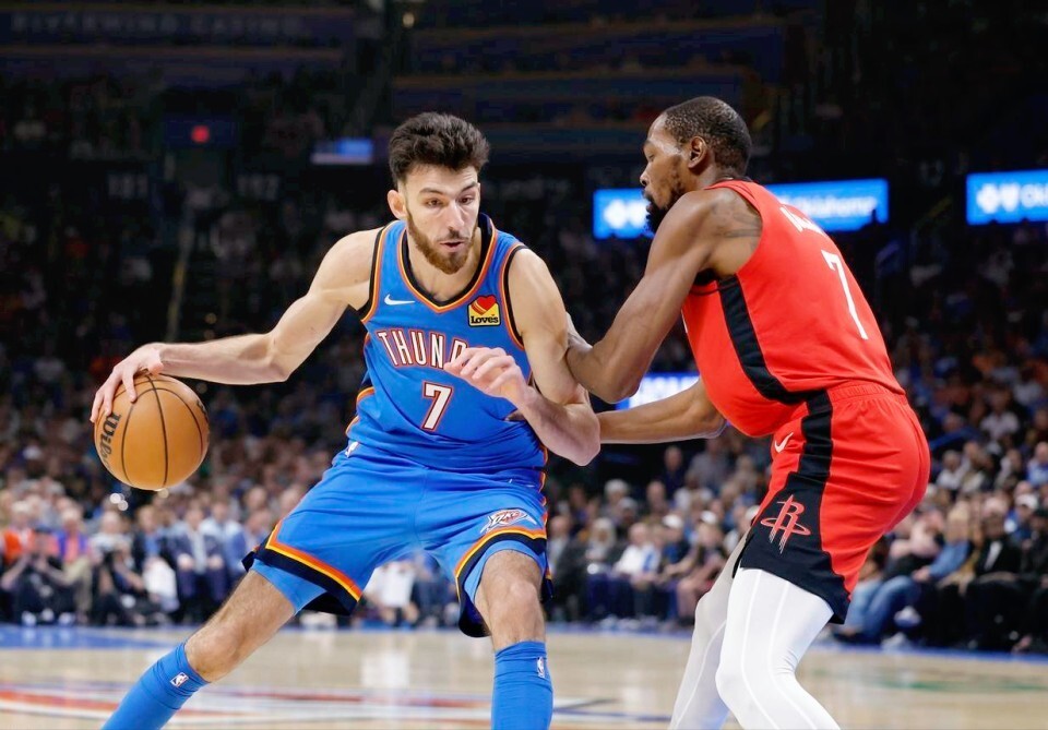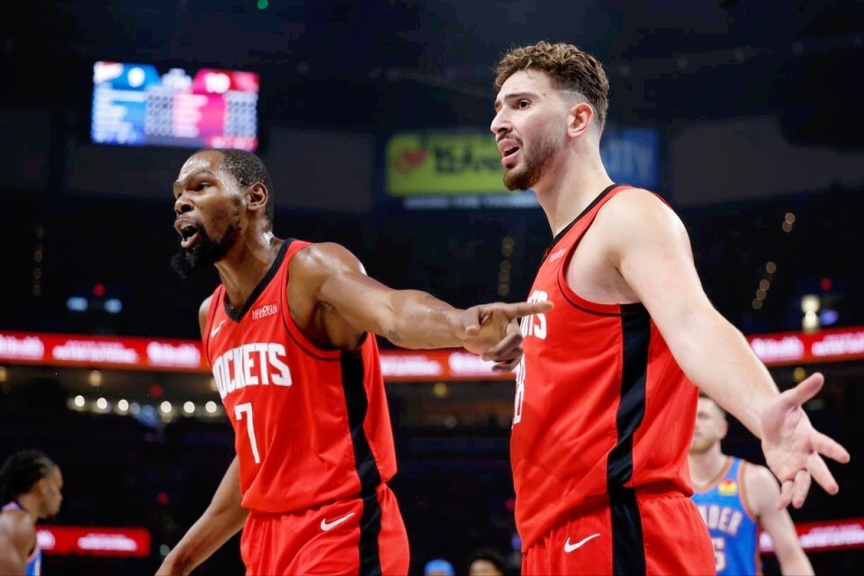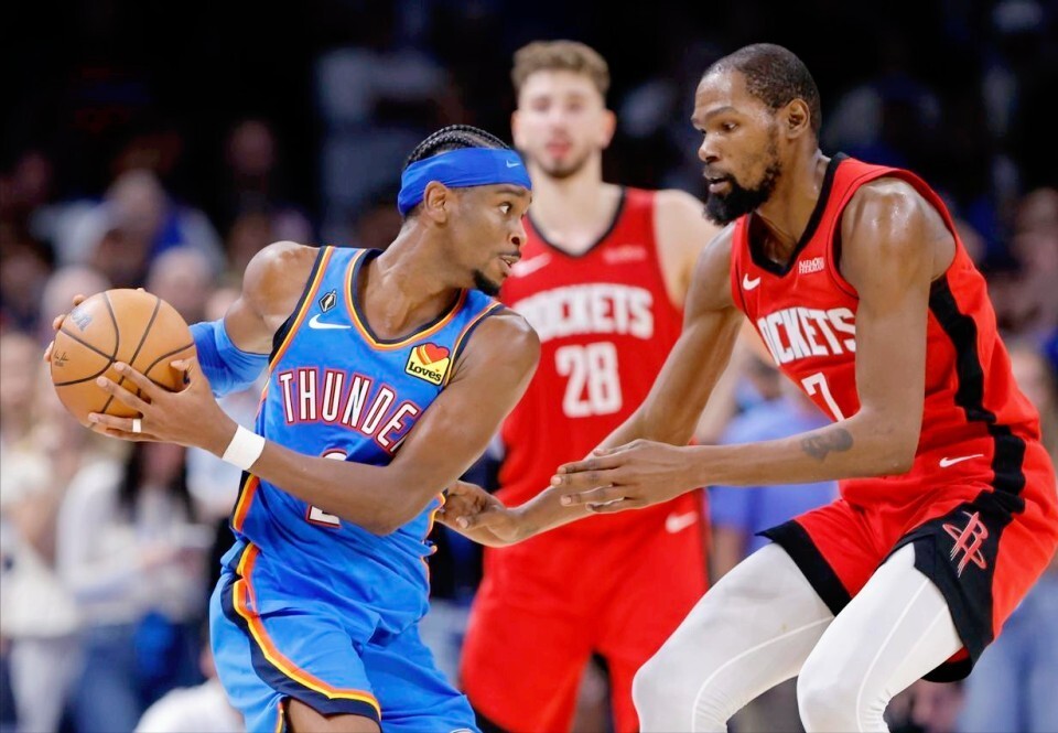 这么一套阵容,看起来哪哪都不缺——杜兰特是顶级得分手,阿门的防守依然稳固,申京在内线的成长肉眼可见,小史密斯能投三分,亚当斯能抢板。结果呢?揭幕战就栽在缺控卫上,而且输的是缺了杰伦威廉姆斯的雷霆残阵。