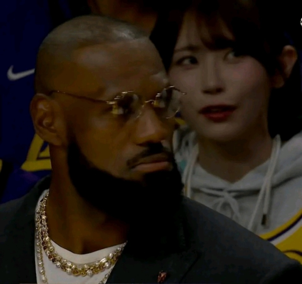 因为身体伤病的困扰,詹姆斯大概还要再休息个把月左右的时间,可这毕竟是湖人队新赛季的揭幕战,还是主场作战,詹姆斯作为核心球员,自然要来到现场为队友加油助威。詹姆斯当天也是盛装出席穿着有型的西装,佩戴大金链子和金丝眼镜,现场转播镜头也是不断的对准詹姆斯。有意思的是,詹姆斯身后的一位亚洲美女却吸引了很多人的眼光。