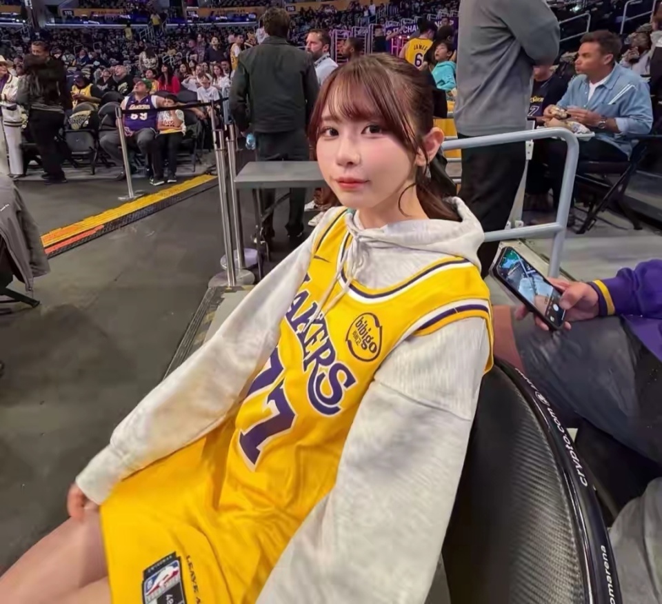 这位亚洲美女坐在湖人VIP球迷席的位置,正好就在湖人球员身后,可谓是能频繁进入转播镜头。只见这位亚洲美女长相甜美,穿着东契奇的77号球衣,看起来可谓是楚楚动人,就像是邻家女孩一样,很快就吸引了球迷的注意。在球迷的努力下,这位亚洲美女的身份信息也很快就透露出来,原来居然是日本的成人女星葵伊吹。