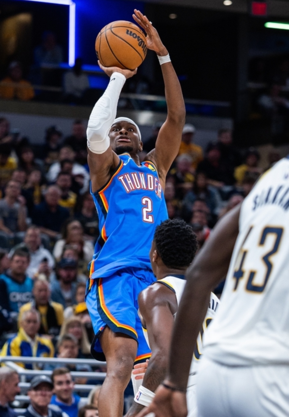 第二个加时,沃克打板先取两分,亚历山大2+1,托平暴扣,维金斯三分手起刀落,亚历山大拉杆上篮打停步行者!维金斯三分再中,谢泼德三分回击,切特补篮得手,西卡跳投命中两分,亚历山大两罚全中,托平挑篮强制续命,亚历山大两罚全中,本场个人得分来到55分,刷新生涯得分纪录!全场比赛结束,雷霆客场双加时141-135险胜步行者拿下两连胜。