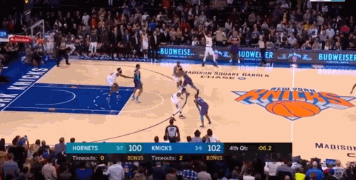 上图为2015-2016赛季,火箭主场迎战独行侠上半场最后2.2秒,哈登四分之三场站位后,借助队友内内Logo位置掩护后,接阿里扎传球完成奔袭上篮。
