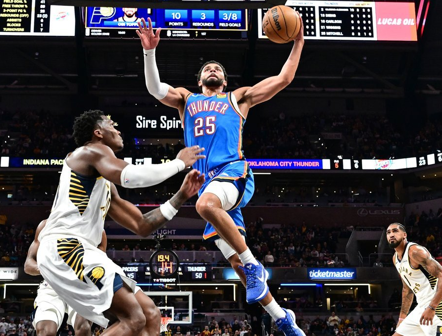 在两天前揭幕战中,雷霆球员领到上赛季总冠军戒指,但他们也被火箭逼到双加时。其中亚历山大在第四节和两个加时独砍24分,带领雷霆1分险胜。雷霆新赛季依旧是夺冠热门,他们最大的优势自然是亚历山大拔高上限的能力,但阵容深度依旧不容小觑。和步行者一战,看起来没有太大悬念,没想到的是,残阵步行者(缺少哈里伯顿+麦康奈尔)却爆发强大的意志力,硬生生将比赛再度拖到第二个加时!而雷霆也成为NBA历史上首支开赛前两场比赛,全部是双加时的球队。这是否意味着他们的实力在被其他球队缩小?
