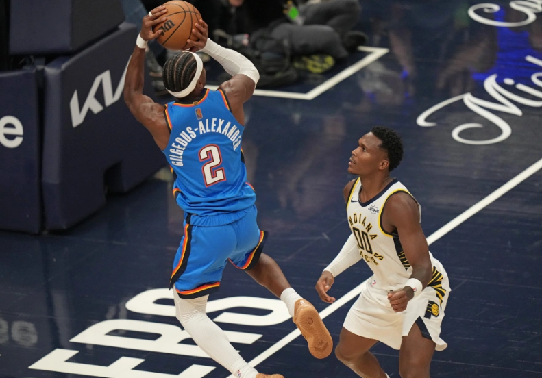 简单回顾比赛。实际上雷霆在第一节并没占到便宜,马瑟琳内突外投,内史密斯续上三分,西卡追身三分+军训霍姆格伦,他们打雷霆似乎得心应手。后半段西卡和托平轮流造杀伤,步行者还领先雷霆3分。第二节开始,亚历山大带队开始爆发,配合杰林与杨布拉德的三分球,雷霆很快反超。后半段维金斯续上三分,但比赛节奏很碎,各种罚球各种犯规。节末步行者主帅卡莱尔,因为抱怨裁判吃到技犯。上半场亚历山大独砍21分,雷霆领先7分。两队胶着的态势,一直持续到第四节末段,最后3分钟,马瑟琳抛投帮球队领先3分。