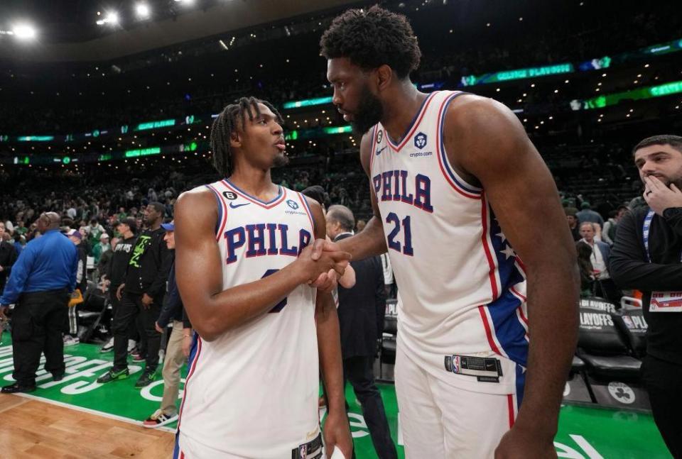 而新赛季这场揭幕战首秀,恩比德打得有多差,就能反衬出他的队友表现有多好。一个是马克西,马克西24投13中,狂砍40分2篮板6助攻,恩比德确实该让位年轻的马克西,胜任球队老大了。上赛季的马克西就没有令人失望,在乔治划水摆烂,恩比德早早报销的情况下,马克西苦苦带队支撑,最终场均也能拿到26.3分3.3篮板6.1助攻,保持着全明星的竞技水准。另一个是今年的探花秀VJ埃奇库姆,常规赛首秀一战,埃奇库姆首发出战42分钟,26投13中,三分球13投5中,罚球6罚3中得到34分7篮板3助攻1抢断。
