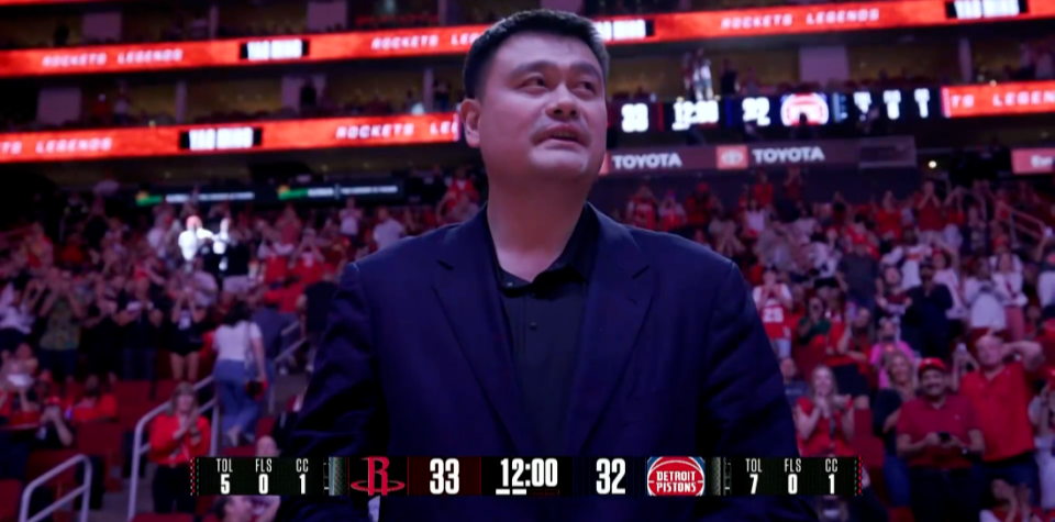 姚明时隔近9年重回火箭主场!获全场球迷热烈欢呼 火箭播放视频致敬