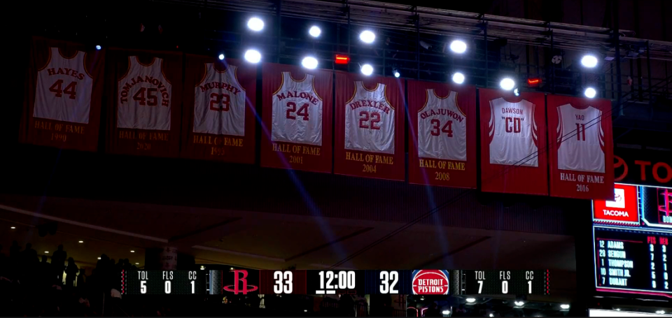 由于今天是火箭队新赛季主场揭幕战,因此火箭队举办了盛大的名宿之夜活动。除了邀请姚明之外,包括奥拉朱旺等队史名宿都来到了现场。火箭队官方还特意播放致敬视频,姚明的出场得到了现场球迷的热烈欢呼。在观赛期间,姚明一直与奥拉朱旺坐在一起!