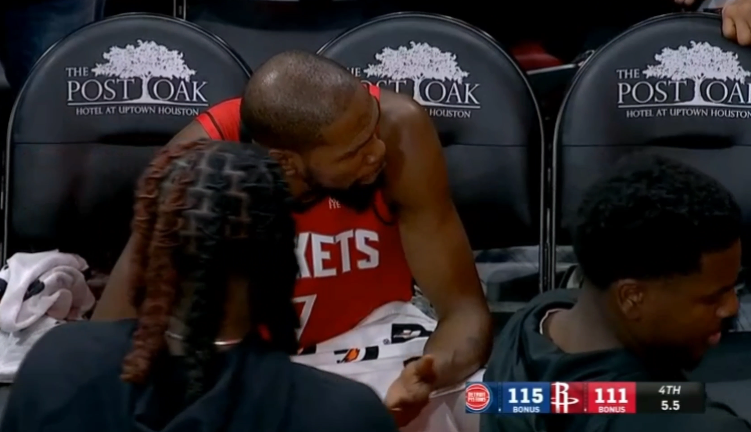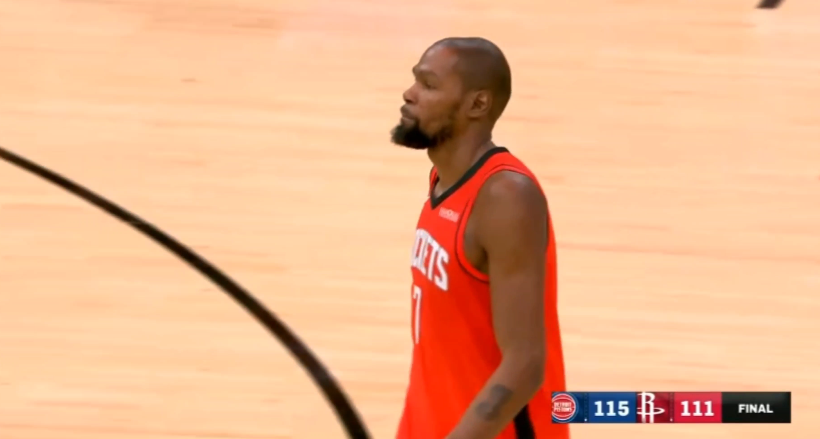 杜兰特沮丧离场!替补席训话一幕曝光 轰37分仍难求火箭生涯首胜