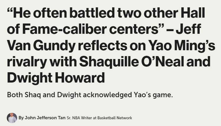 在范甘迪眼中,虽然姚明不像奥尼尔那样强壮,也不像霍华德那样有运动天赋,但他还是在NBA中开创了属于自己的传奇。