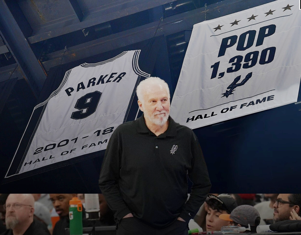 没有盛大的仪式,球迷们抬头望向弗罗斯特银行中心的球馆穹顶,只见一面简约的白色横幅,上面写着“波波1390”,以此致敬他创下的NBA教练生涯胜场纪录。横幅除印有马刺队徽外,顶部还有五颗星,代表波波维奇为这支曾一度战绩低迷的球队带来的5次总冠军;横幅底部则印有“名人堂”字样,以纪念他在2023年入选篮球名人堂。