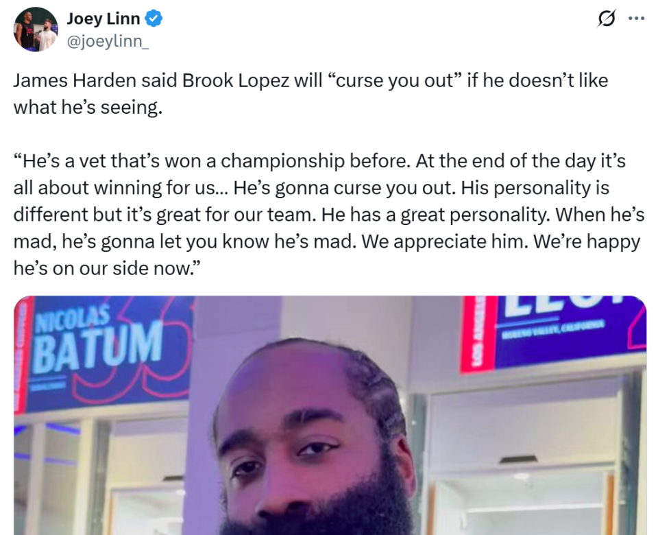 赛后哈登就直言不讳表示,我们的目标就是冠军,大洛作为一名赢得过冠军的球员,对我们的团队非常有益,他是一名有着很好的性格,但如果比赛表现让他不满,他会直接骂你,我们都很感激他,庆幸他在我们这边。