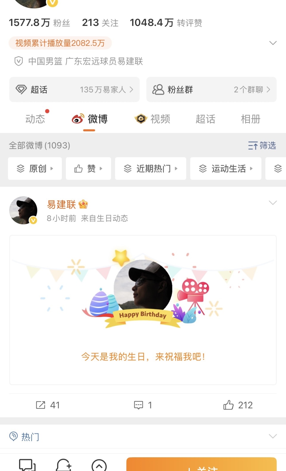 易建联迎38岁生日!风波1年仍未正式复出,1577万粉丝仅1评论