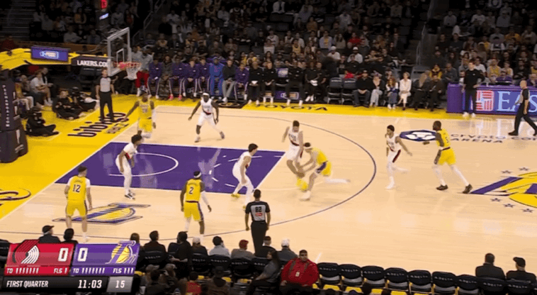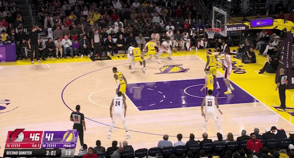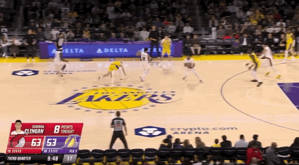 易边再战,卡马拉空切上篮,范德比尔特扣篮得手,夏普和克林根连续得分,里夫斯三分命中。艾顿漂移投篮,湖人将分差缩小到个位数,克林根补篮得手,开拓者打出一波8-0的进攻高潮还以颜色。里夫斯和格兰特对飙三分,克内克特连得6分,乐福空切上篮,格兰特三分命中。八村垒和史密斯连续得分,霍勒迪连得5分,开拓者带着12分领先优势进入第四节。
