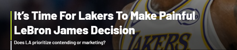 对湖人队而言,若让詹姆斯在洛杉矶退役而非交易他,等他退役时球队将得不到任何回报——在薪资空间日益紧张的联盟里,这无疑是在浪费潜在的资产。