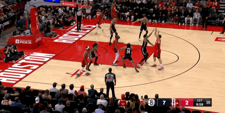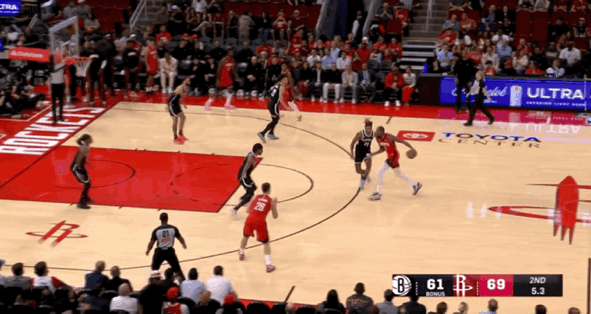 虽然篮网曾尝试将分差追到个位数,但是火箭总有进攻回应,杜兰特2罚全中,并在终场前顶着3次犯规命中极限准压哨投篮,仍然为火箭保持着10分领先优势进入下半场比赛。杜兰特上半场11中4,罚球4中4得到12分4篮板。