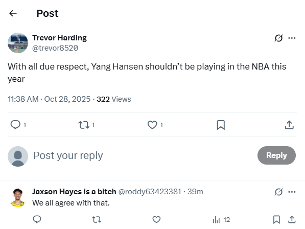 美国球迷是如何评价杨瀚森的?一位球迷在开拓者的推特上留言暴击:“这哥们,是我见过的最差篮球运动员!”