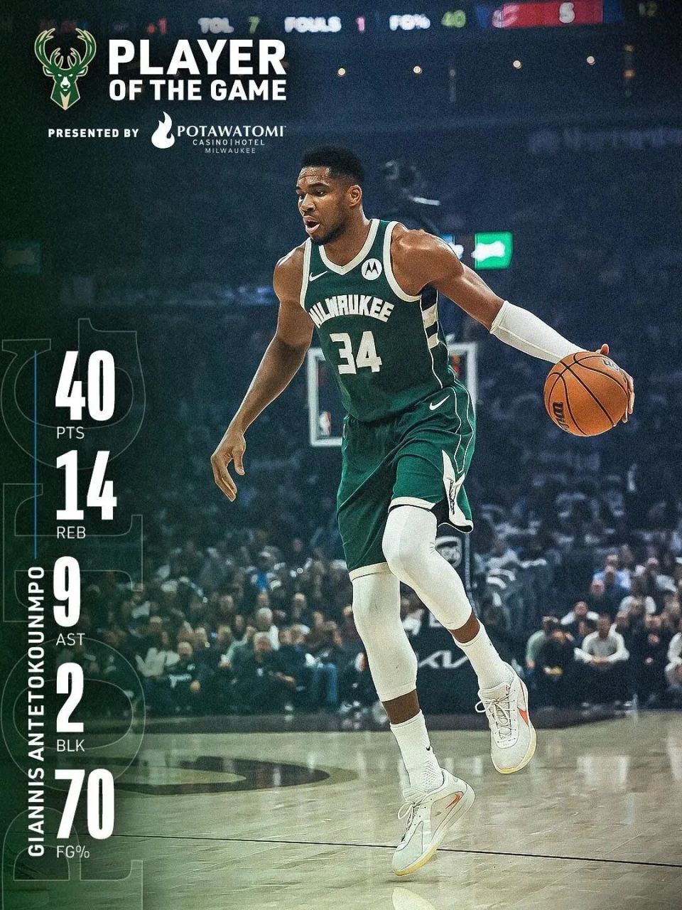 截至今天赛前,雄鹿2胜1负:133-120击败奇才,字母哥26投16中,砍下37分14篮板5助攻;122-116击败猛龙,字母哥14投11中,砍下31分20篮板7助攻;113-118惜败骑士,字母哥20投14中,空砍40分14篮板9助攻。