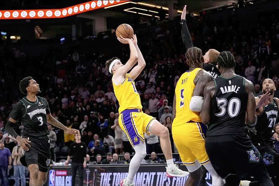 先说这场球的剧情,典型的湖人式过山车。前两节打得顺风顺水,里夫斯虽然被针对,但传球还在线。到了末节2分27秒,艾顿打进之后,湖人还114比106领先8分,眼看要稳赢。结果接下来两分钟突然断电,麦丹和兰德尔连得9分,直接把比分反超成115比114,森林狼那边刚反超,湖人球迷的心都提到嗓子眼了。