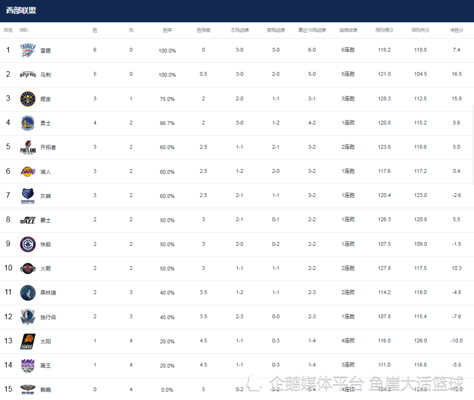 NBA最新排名!雷霆两队保持不败,湖人追近勇士,火箭快船肩并肩