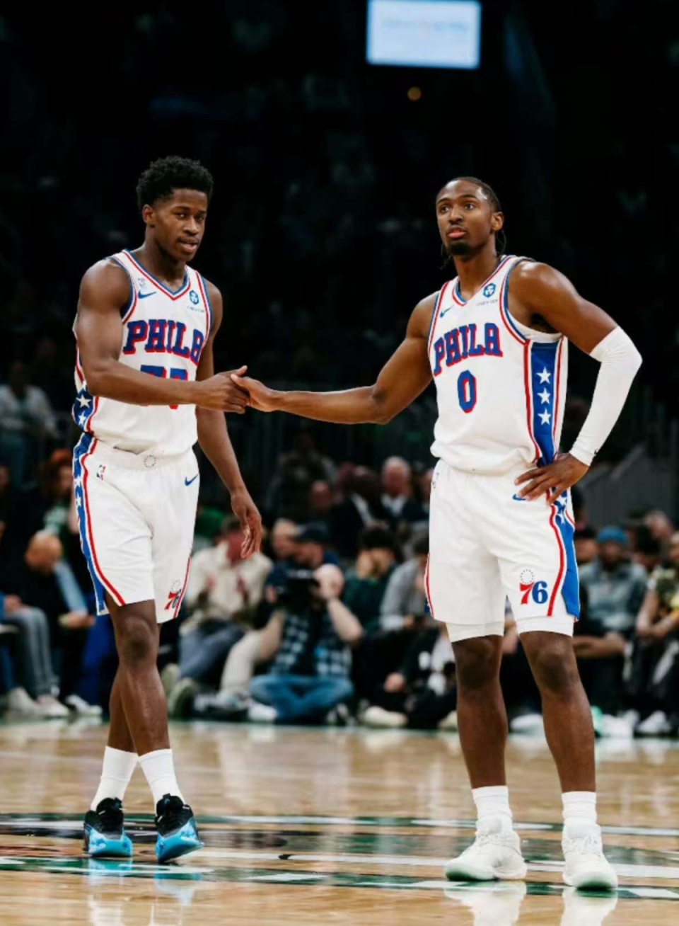 76人打的好,源于核心马克西的出色发挥,赛季至今场均37.5分8.3助攻,已经打成了MVP级别的表现!今年的新秀埃奇库姆更是带来惊喜,场均22.3分5.8篮板5.5助攻,表现非常全面,再加上格莱姆斯、乌布雷等角色球员的出色发挥,恩比德逐渐找回状态,76人的实力,不容小觑! 4胜0负的76人,主场迎战绿军,作为NBA杯的第一场比赛,他们自然全力争胜!不过一开场,绿军明显更快进入状态,普理查德连中中投,为绿军取得领先!恩比德联手马克西不断取分,带领76人展开追赶,可是布朗本场状态手感太火热了,内突外投连续取分,个人单节砍下16分,在他的带动下,绿军也在首节建立了13分的领先!绿军的火力在次节依旧凶猛,西蒙斯、怀特连中3分,球队占据了比赛的绝对主动,一举把分差拉大到24分,比赛有些被打花了!
