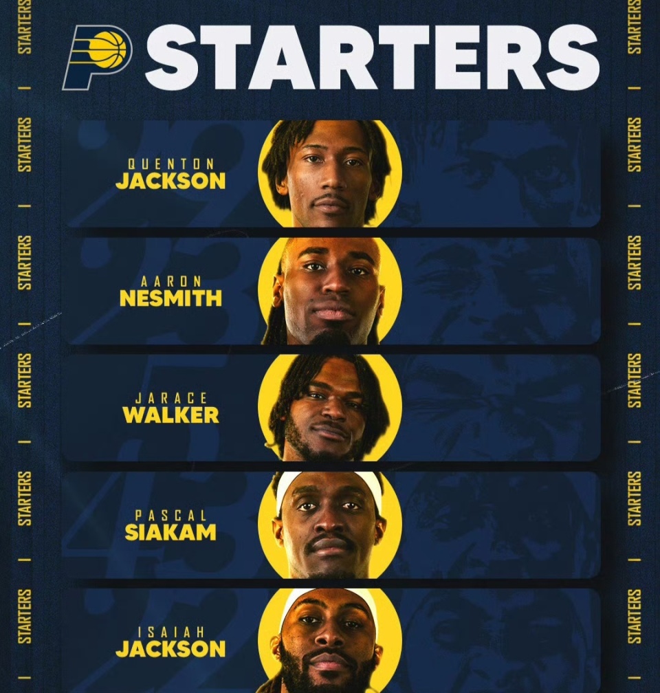 步行者:昆顿·杰克逊、贾雷斯·沃克、内史密斯、西亚卡姆、以赛亚·杰克逊
