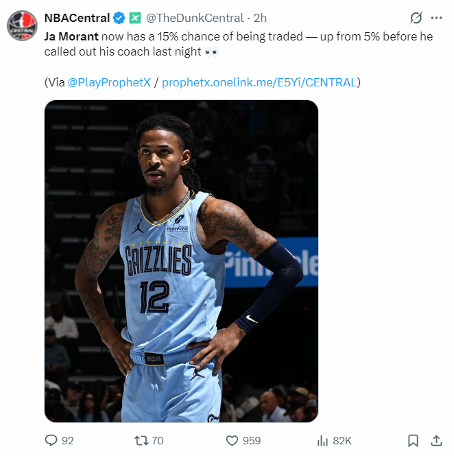 目前莫兰特被交易的概率已经提升到15%,而在他昨天炮轰教练组后只有5%,看起来莫兰特与灰熊的矛盾是越来越深。