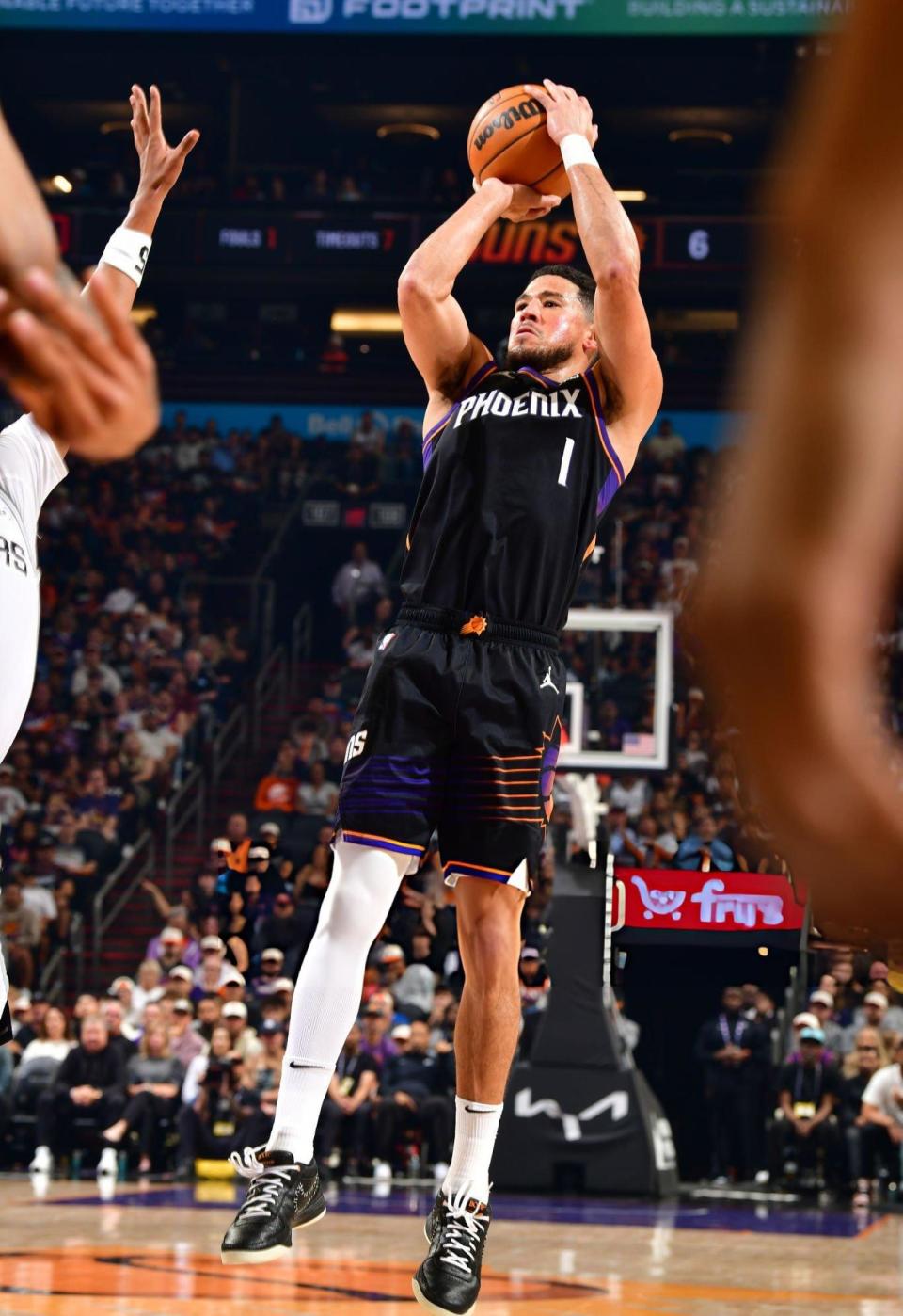 次节比赛,理查兹和约翰逊先后得手,理查兹两罚全中,吉莱斯皮投篮得手。约翰逊和哈珀连续得分,理查兹连续得分,布克命中三分,太阳队拉开分差到13分。哈珀和约翰逊连续建功,邓恩、布克、理查兹连续给出回应。尚帕尼两罚全中后,古德温命中三分,邓恩两罚全中。巴恩斯和卡斯尔连续得分,阿伦和古德温连中三分。巴恩斯命中三分后,马威和文班亚马先后扣篮,奥尼尔和尚帕尼先后命中三分,邓恩上篮得手,布克命中罚球,太阳队70-52领先马刺队结束上半场。