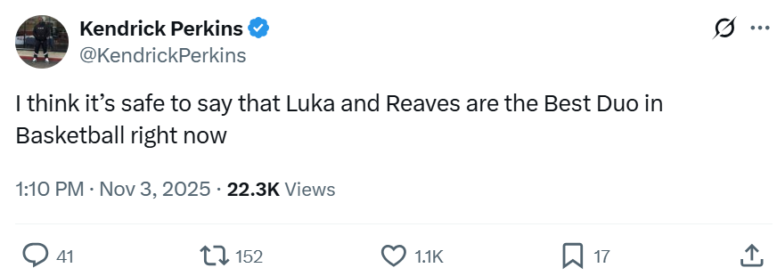 名嘴帕金斯面对两人完美的配合与表现也不禁发文感叹:“我可以肯定的说,东契奇与里夫斯就是当今篮球世界最好的双人组。”