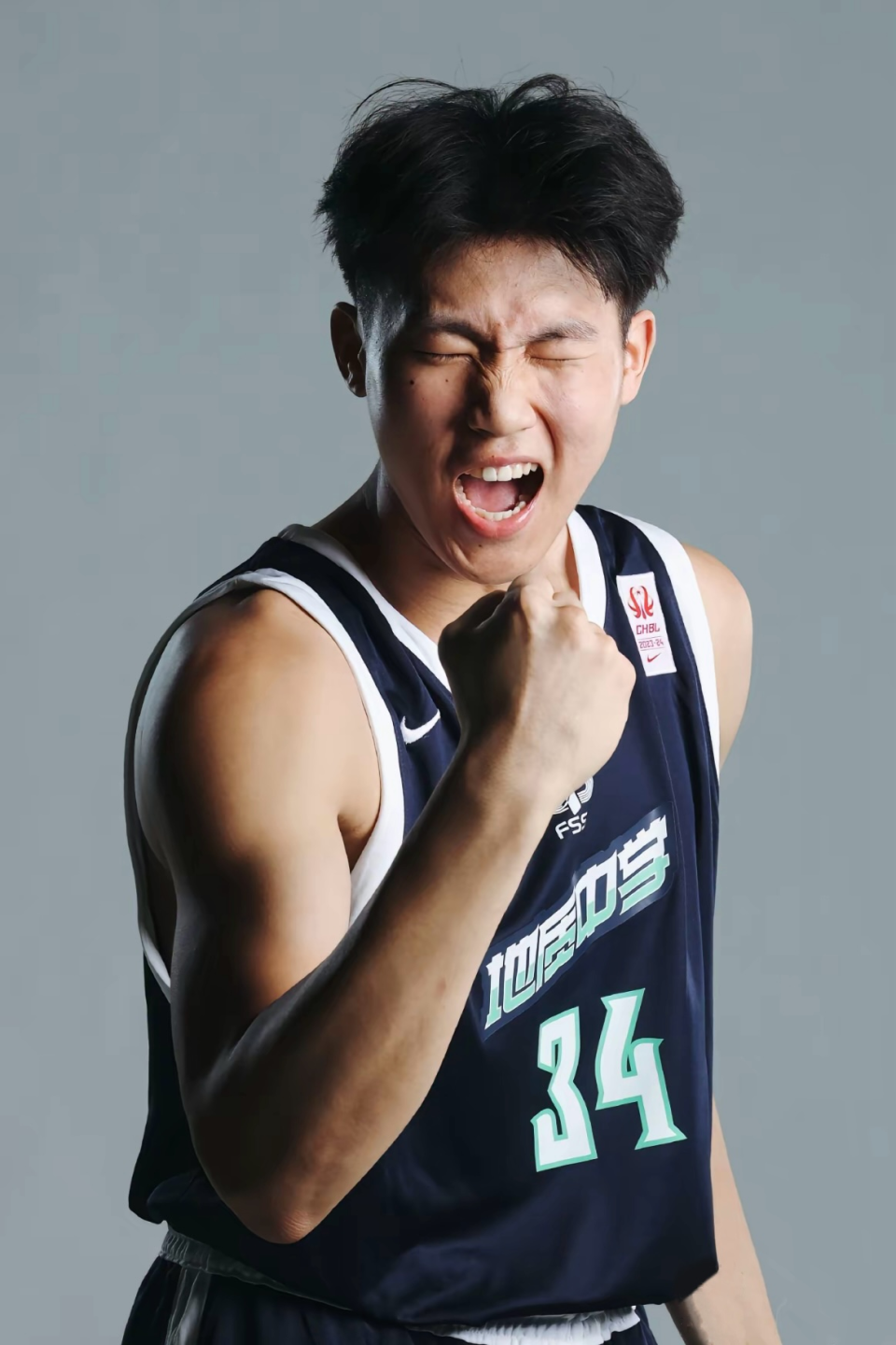 后来在叔叔的引荐下,卢溢廷来到了地质中学,教练彭志强第一次见到他时,就注意到这个少年不仅有身高优势,更有远超年龄的专注力。在队友的帮助下,他很快适应了球队“小快灵、稳准狠”的风格,在日复一日的训练中打磨技艺。球队的优良氛围也给了他最好的成长土壤,这支从2002年靠教练骑单车招生起步的队伍,早已把“狼道精神”刻进骨子里。每天训练结束后,卢溢廷总会留下来加练三分,从45度角到弧顶,每个点位投进50球才肯离场。队友邹宇航记得:“冬天下雨没法室外训练,他就在体育馆里练到保安来锁门。”